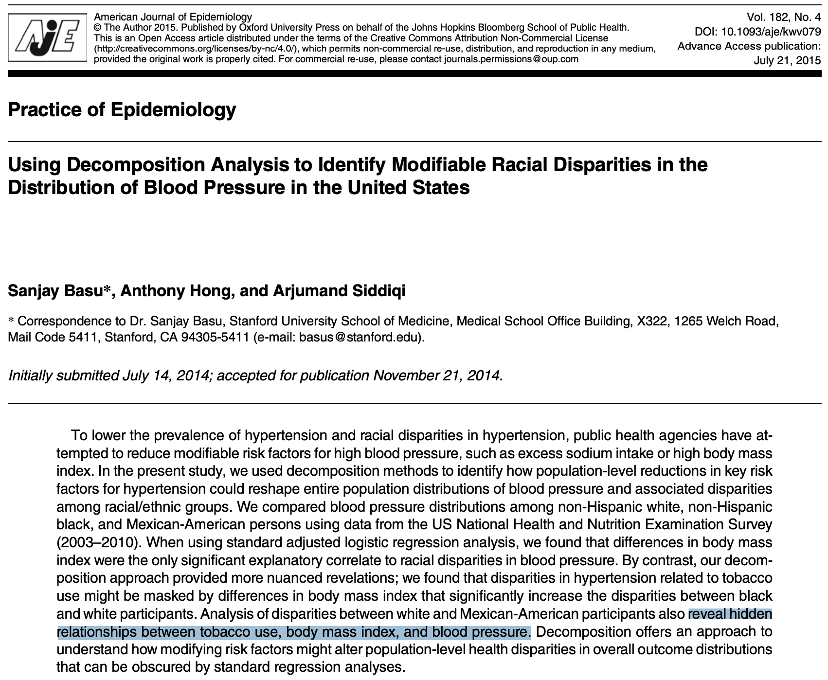 …black participants with [high] blood pressure level have generally better risk factor characteristics… but the risk factors that we studied could not explain the higher blood pressure levels observed among black participants.