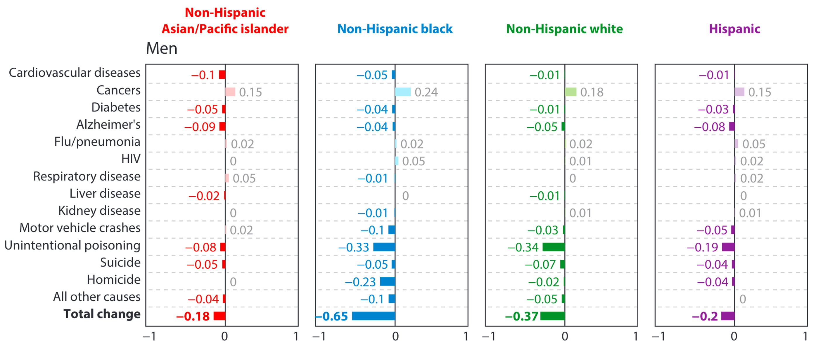 Years of life lost 2014-2017, by gender, race, and cause