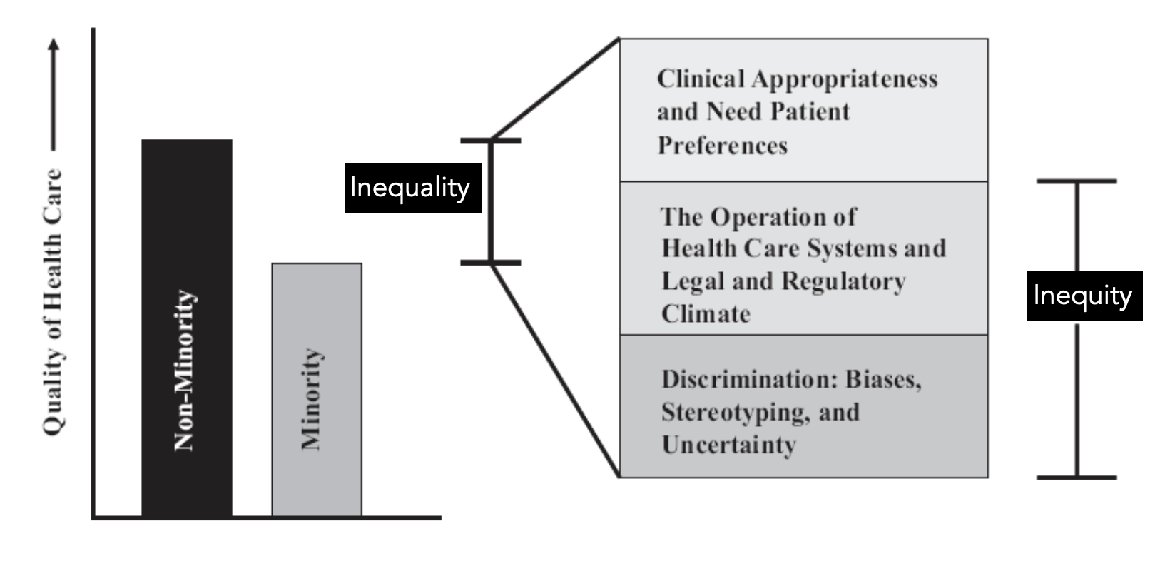 Health inequalities generated by interlocking systems of power and oppression.