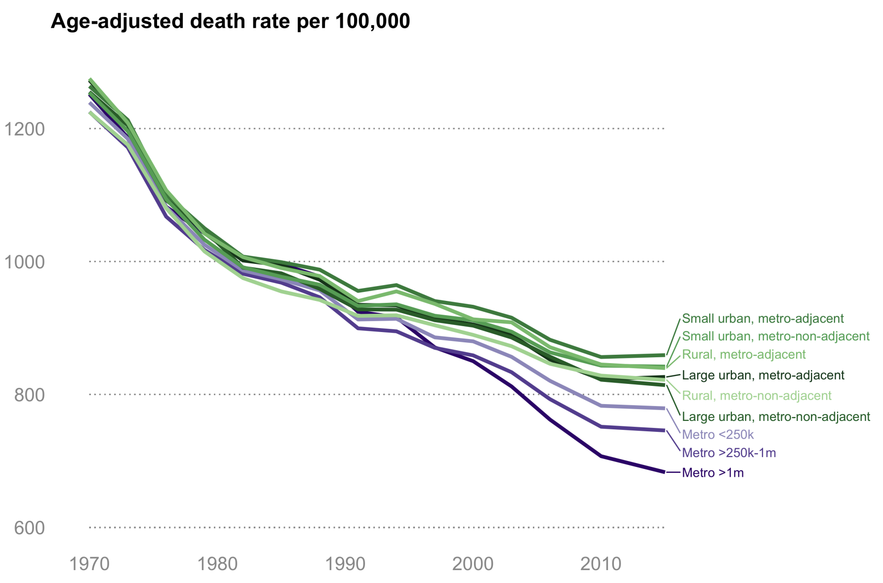 Rural-urban mortality gap began widening in 1980s.