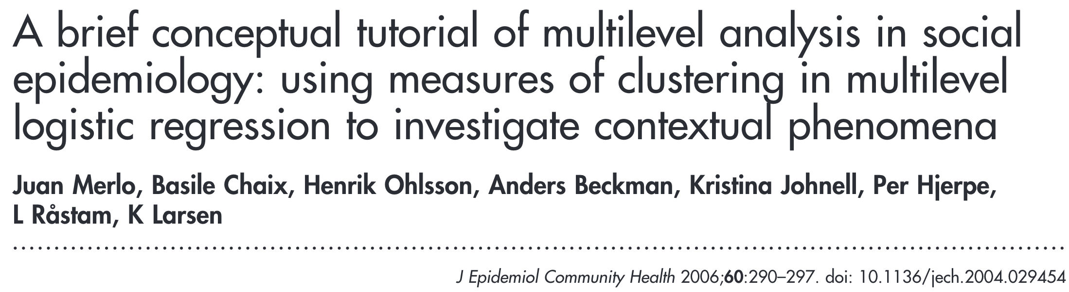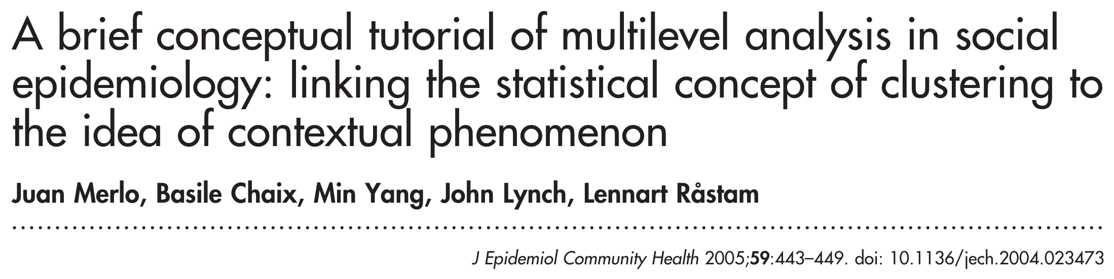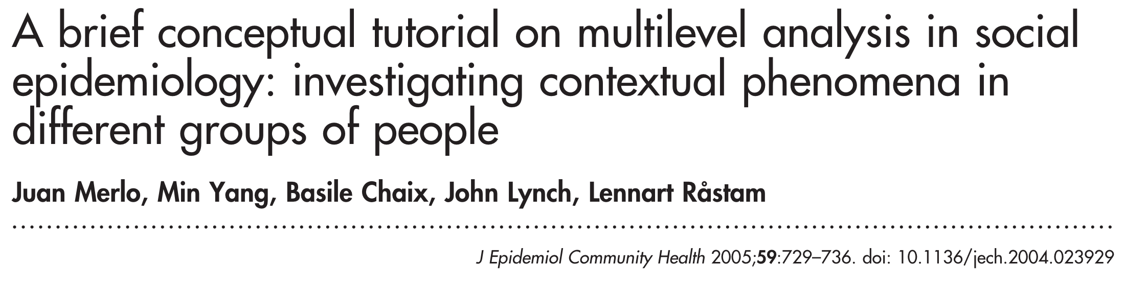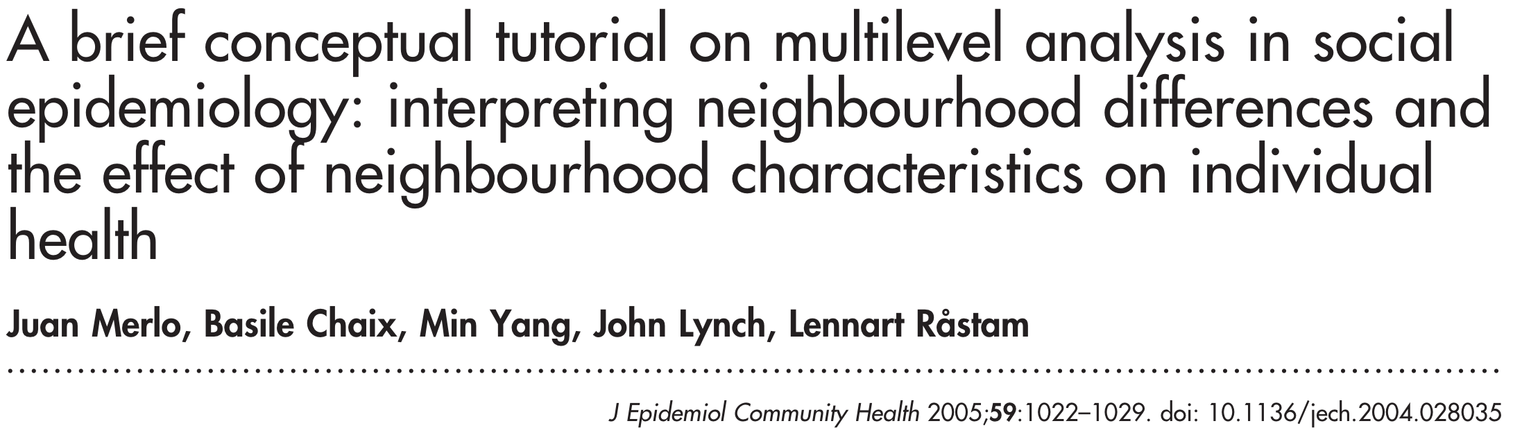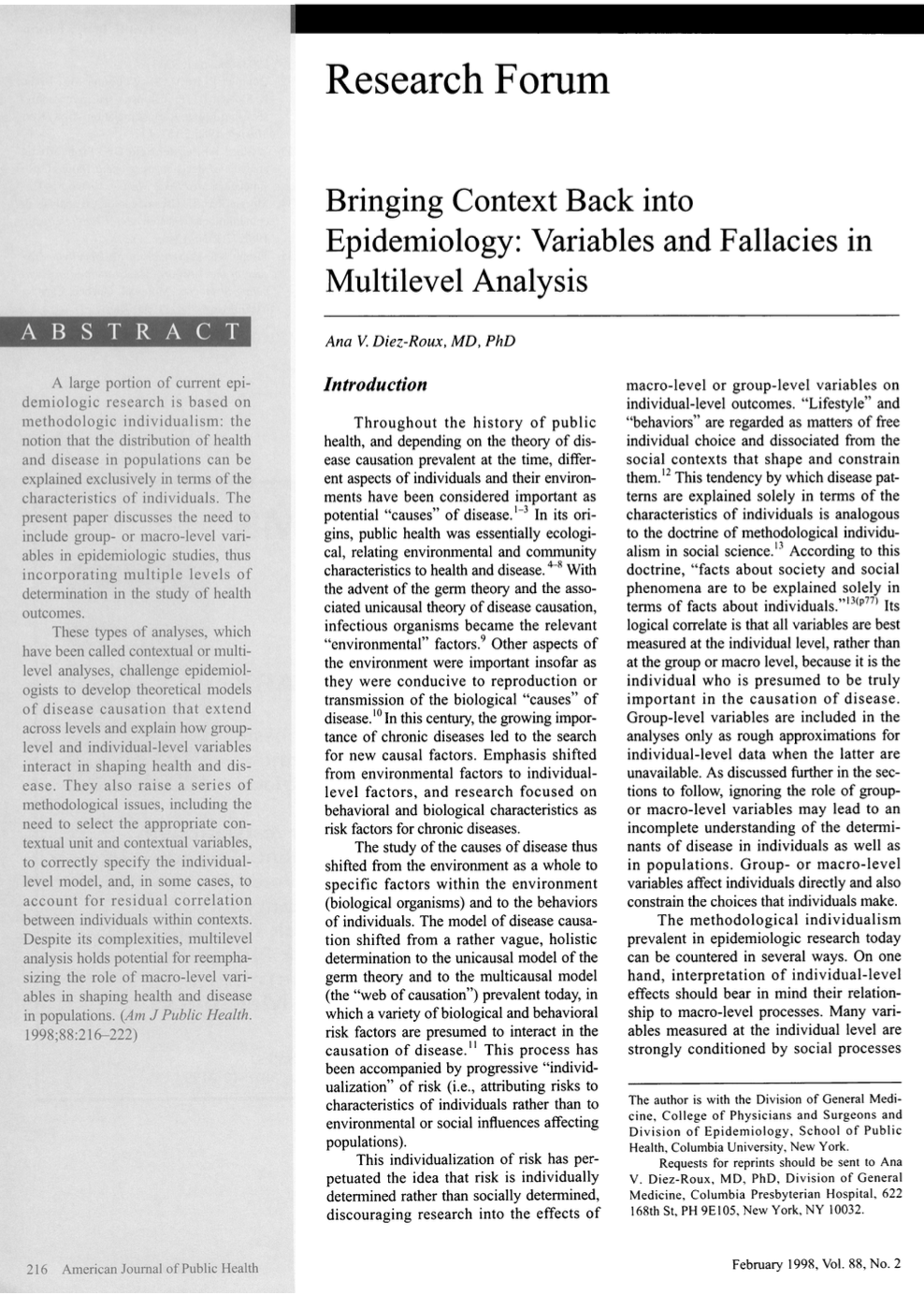 Multilevel analysis is one way to begin to restore a population or societal dimension to epidemiologic research