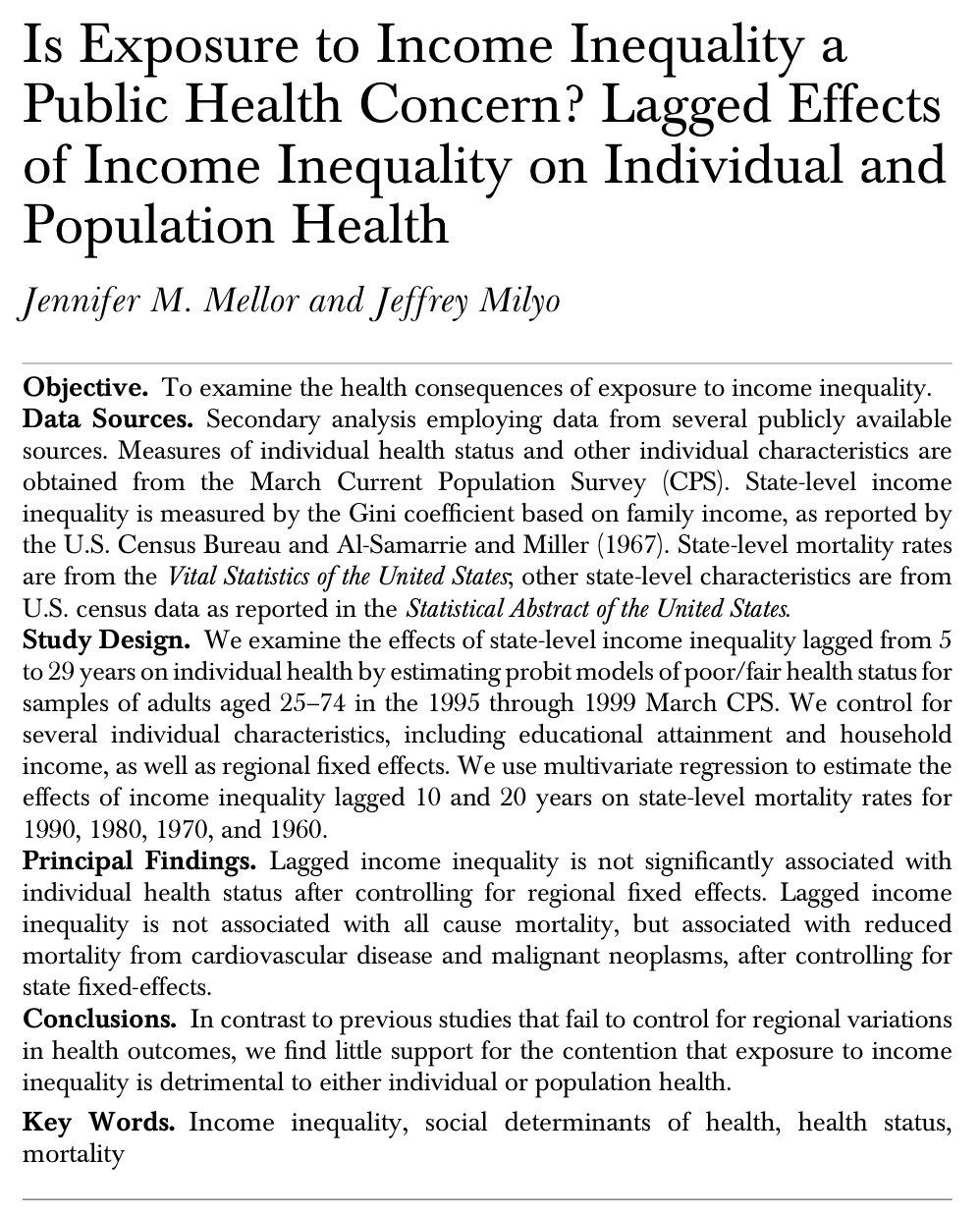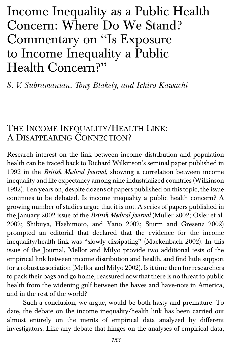 Evidence for the income inequality/health link was “slowly dissipating”