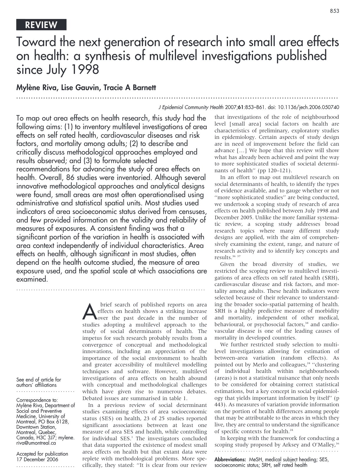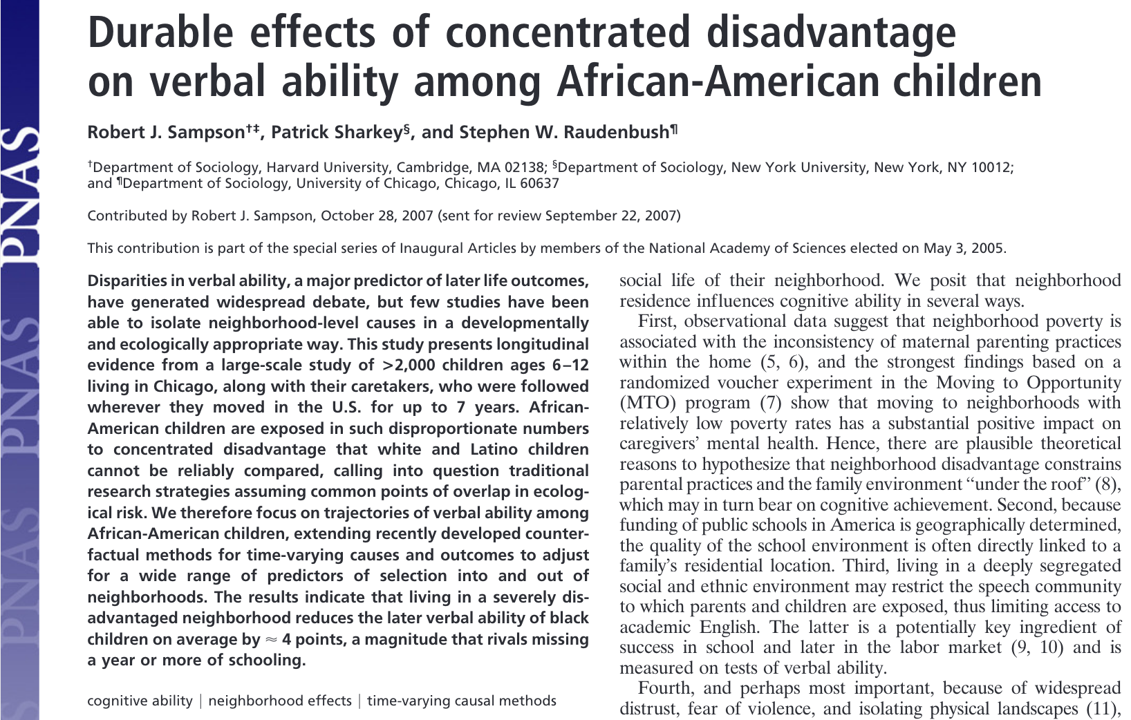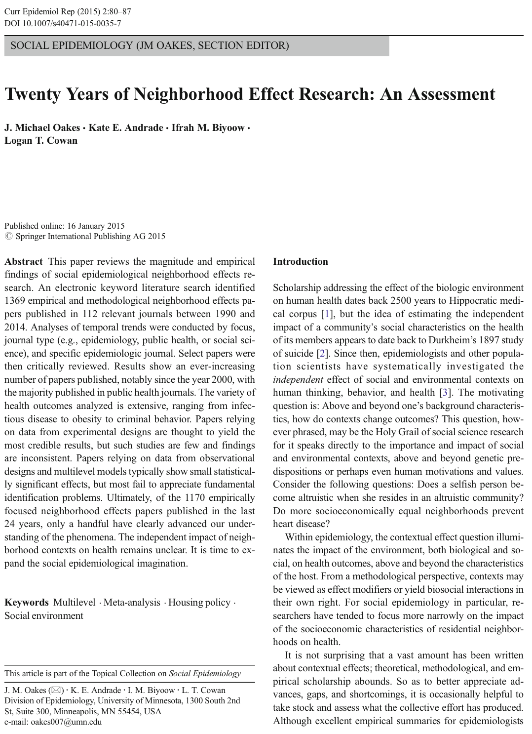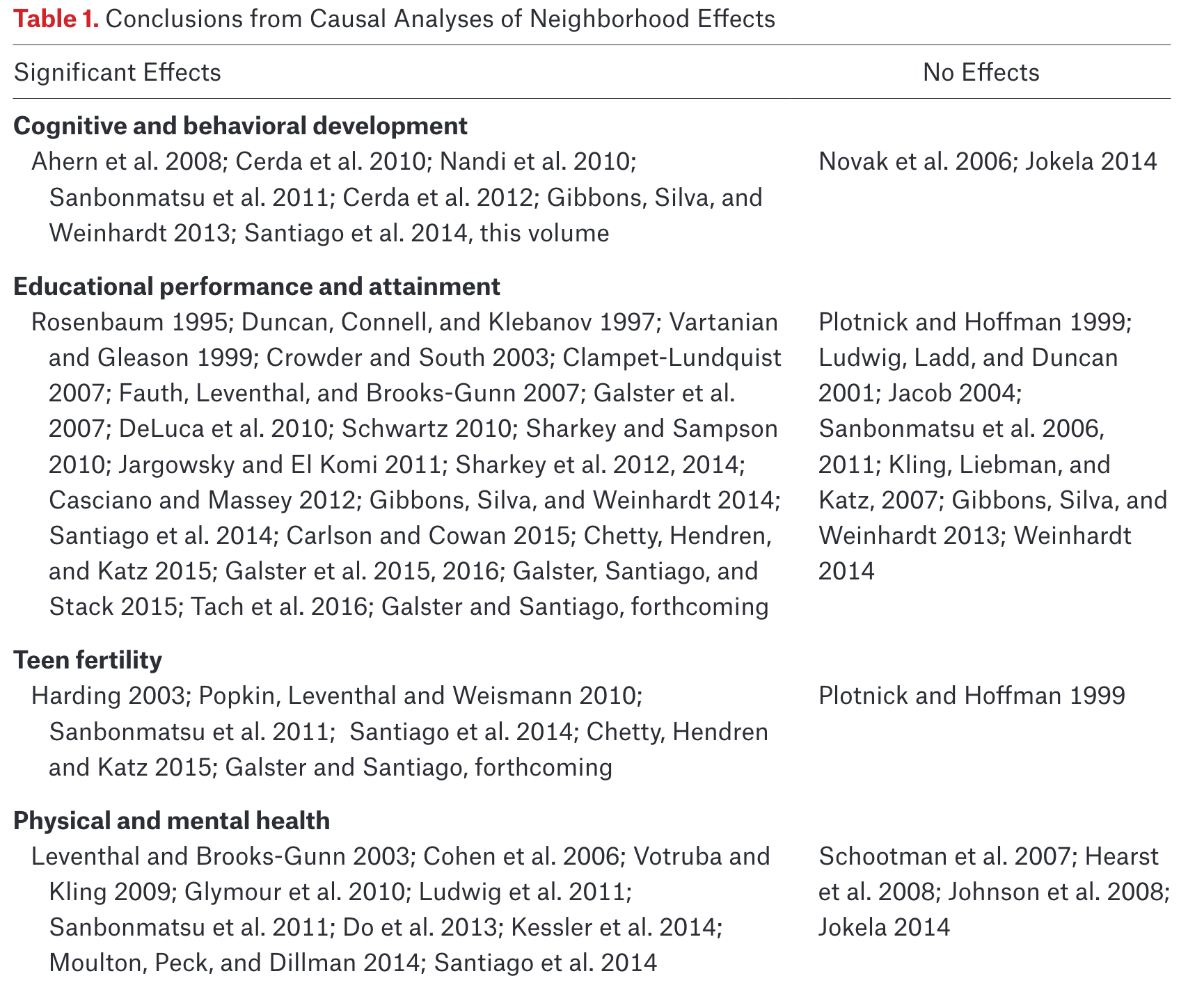 Recent review of ‘causal analyses’ of neighborhood effects.