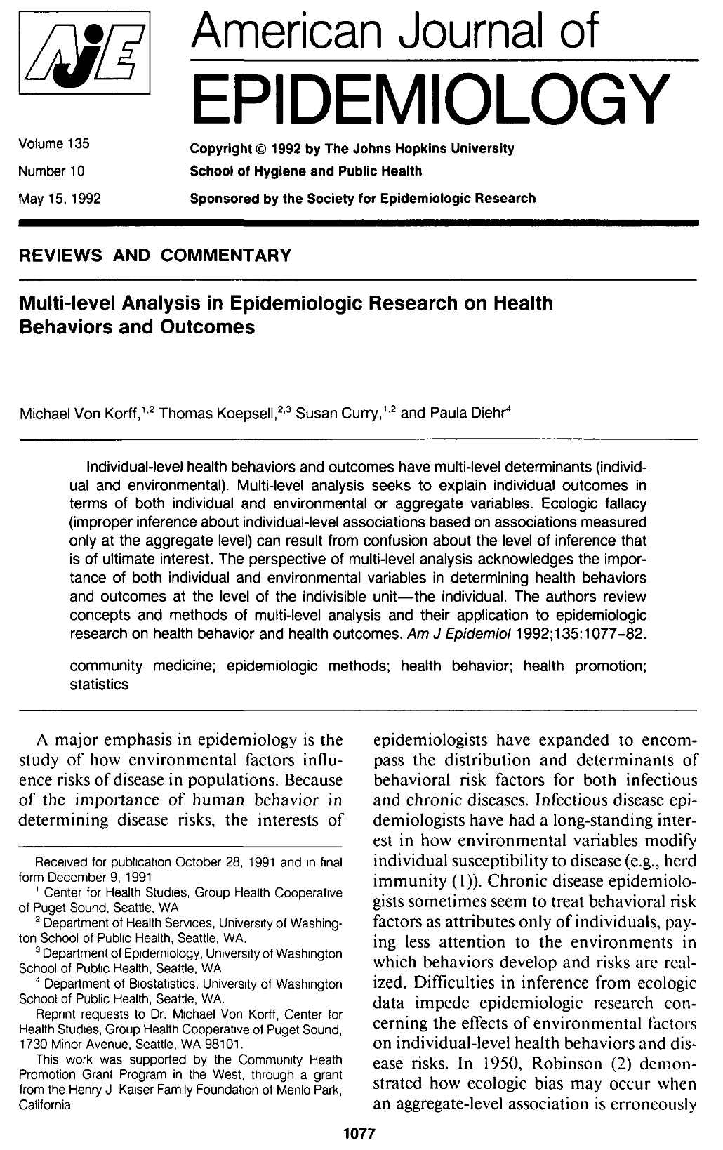The development of multi-level approaches in epidemiologic research may facilitate research which elucidates the independent and joint effects of individual and environmental factors on health behaviors and health outcomes.